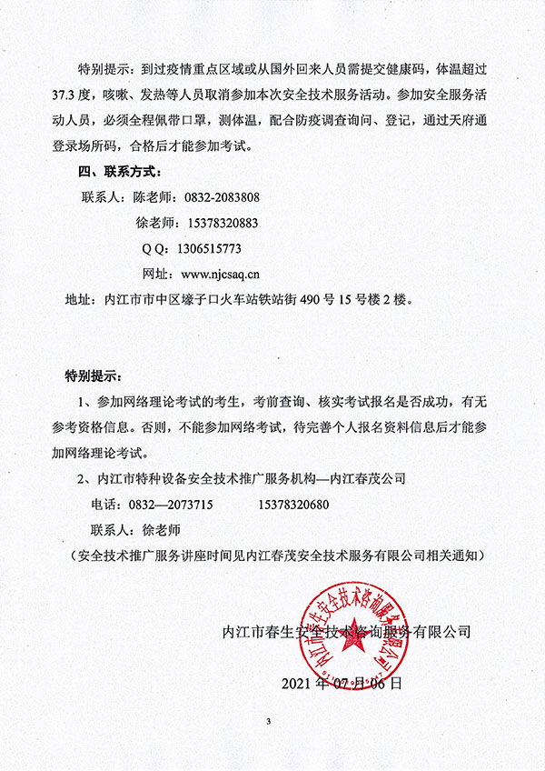 2021年春生公司05期特種設備作業(yè)人員考核時間安排